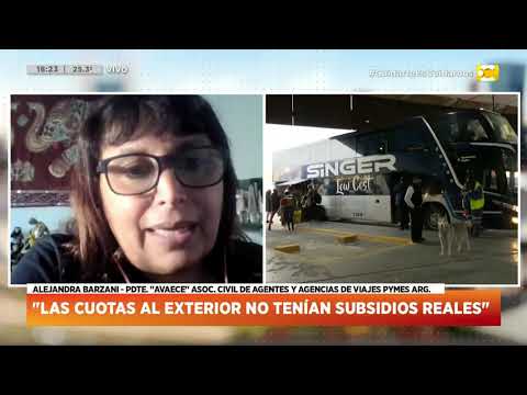 14 octubre 2022 Alejandra Barzani, presidenta de la Asociación Civil de Agentes y Agencias de Viajes Pymes Argentinas, habló de cómo están impactando las nuevas cargas impositivas que padecen aquellos que quieran viajar al exterior y de cómo están influyendo en el turismo adentro de nuestro país
